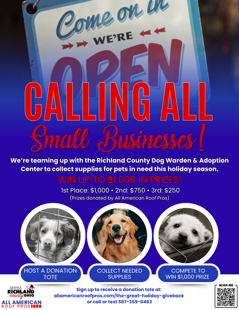 We’re partnering with local organizations and small businesses to help those in need across our community. This year, we’re proud to support the Richland County Dog Warden and Adoption Center — collecting supplies to help care for local shelter dogs this winter.